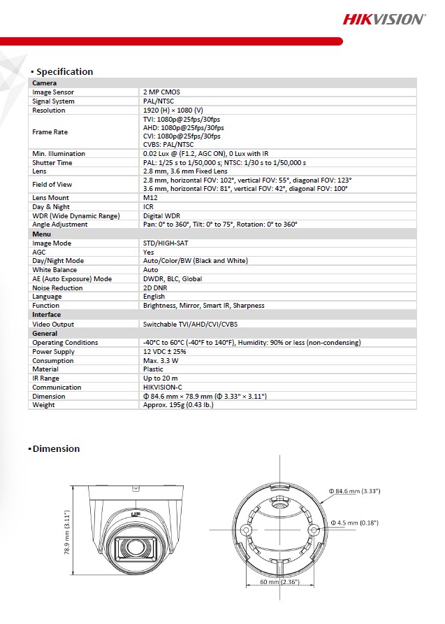 - High quality imaging with 2 MP, 1920 × 1080 resolution