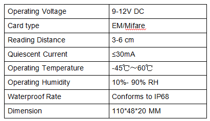 - Fast Search speed : time between reading card and opening the door is less than 0.1S